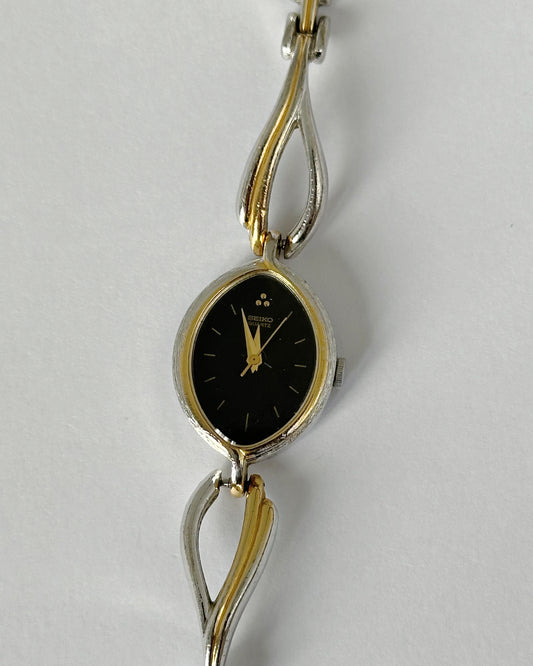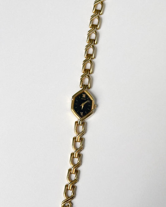 Vintage Seiko Hexagonal Black Dial Gold-Tone Bracelet Watch