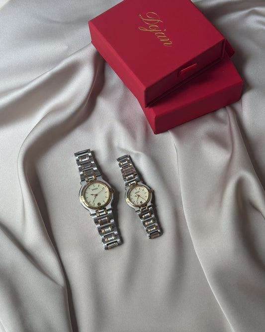 Our Dual-Tone Watch Collection celebrates the harmonious fusion of two distinct materials or colors, creating timepieces that are both versatile and visually captivating. By blending elements such as stainless steel with yellow or rose gold, these watches offer a balanced aesthetic that effortlessly complements both casual and formal attire. The contrast between the metals not only enhances the watch’s visual appeal but also adds depth and character to its design. Whether you’re drawn to the classic combination of silver and gold or more contemporary pairings, our collection provides a range of options to suit your personal style. Embrace the enduring charm and sophistication of dual-tone watches, perfect for any occasion.