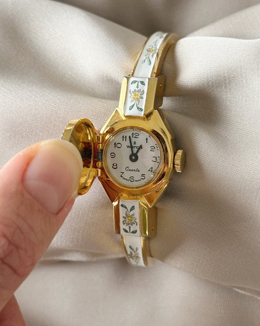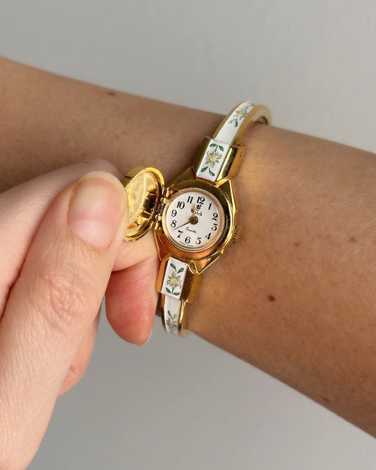 Vintage Yellow Floral Peek-A-Boo Bangle Watch