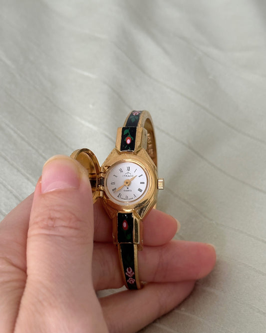 Vintage Green Floral Peek-A-Boo Bangle Watch