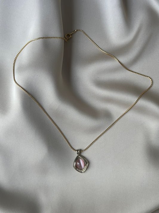 Pink Cat’s Eye & Crystal Pendant Necklace
