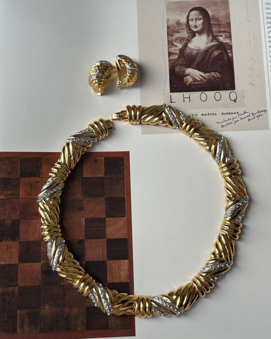 Vintage Pierre Balmain Gold-Tone Collar Necklace & Clip-On Earrings Set