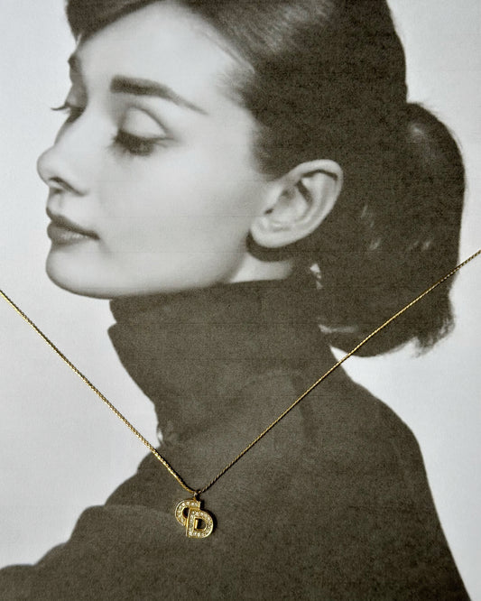 Vintage Christian Dior Gold-Tone Crystal "CD” Pendant Necklace